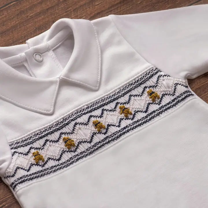 Almudena Baby Bears in Navy White Smocked Footie