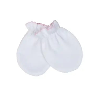 White Pima Mittens Pink Trim