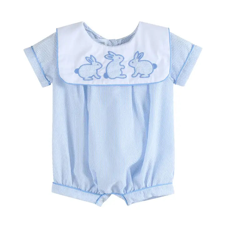 Lil Cactus Light Blue Seersucker Easter Bunny Smocked Flutter Romper