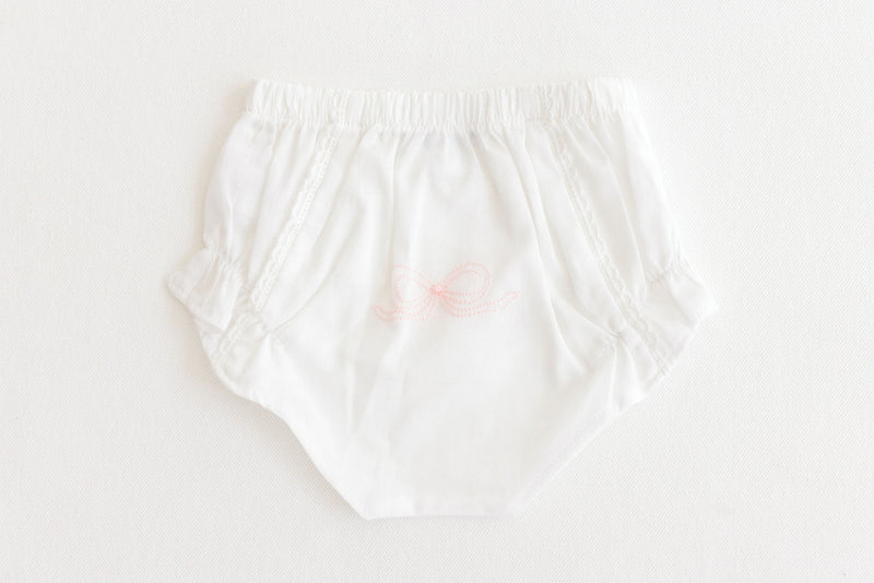 Terry Tots Diaper Cover -White with Pink Embroidered Bow