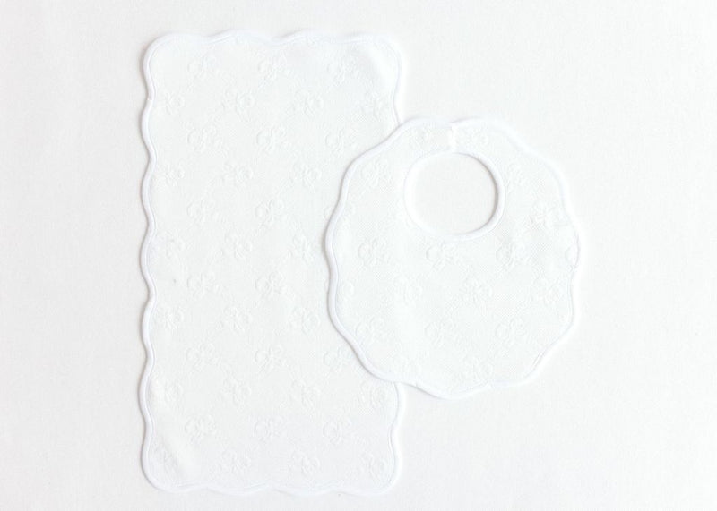 Terry Tots Bib & Burp Set in White Jacquard Bows