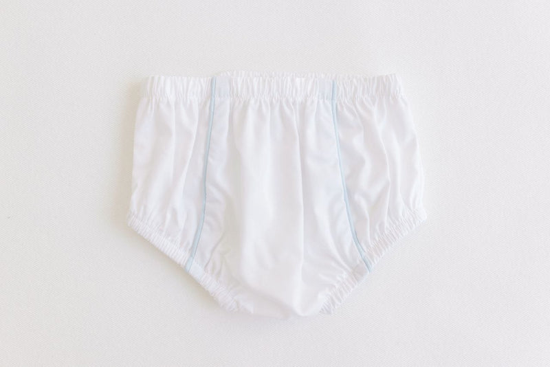 Terry Tots Diaper Cover in White with Blue Trim 0-3 MONTHS