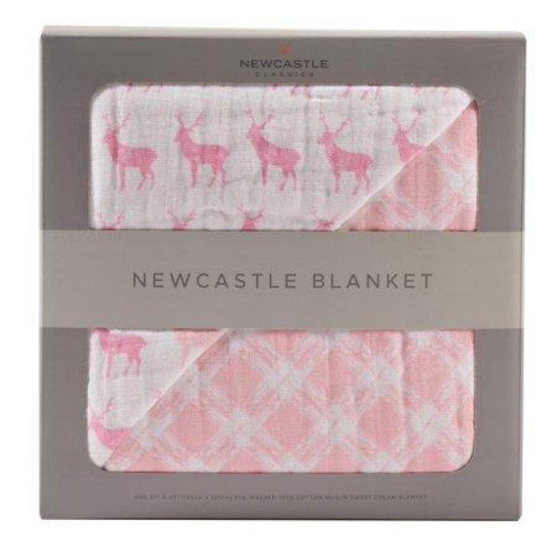 Newcastle Blanket Cotton Muslin (Pink Deer and Primrose Pink Plaid)