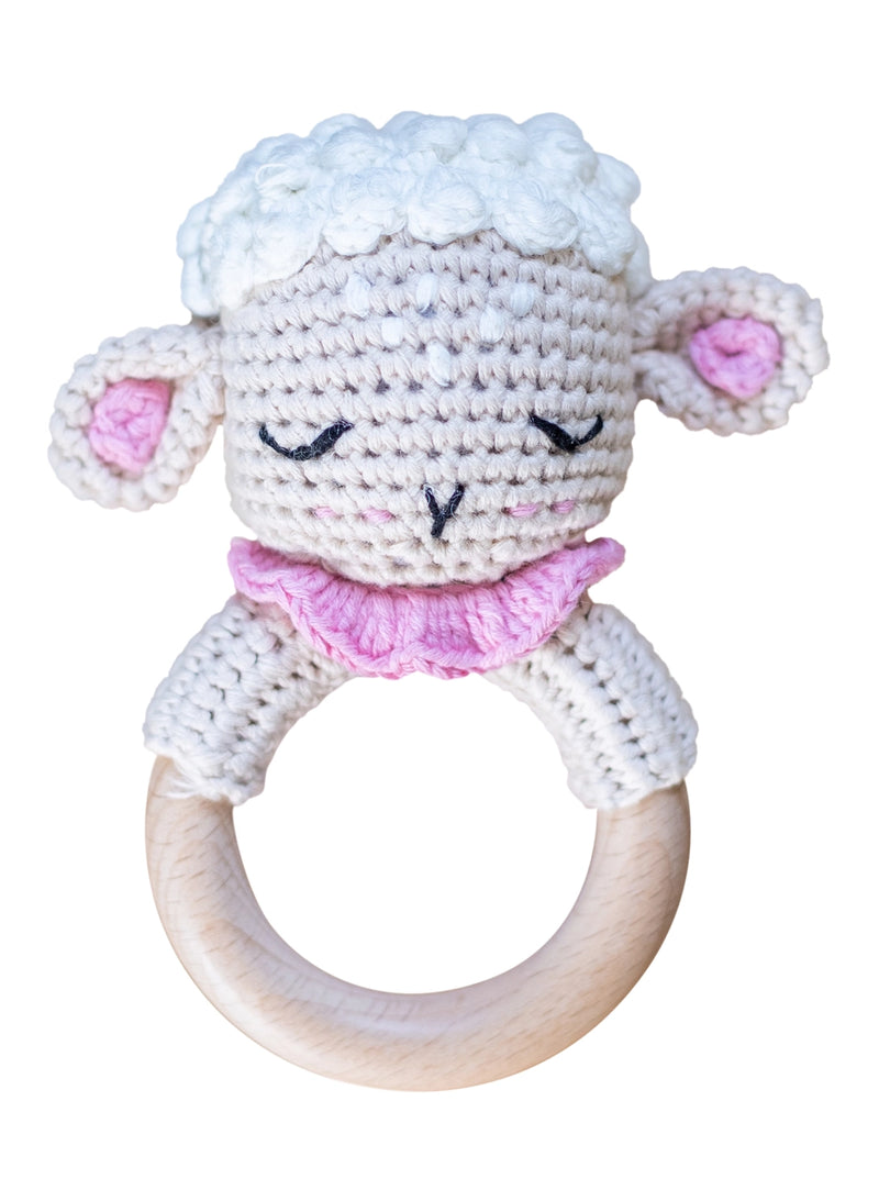 Hand Crochet Lamb Rattle in Ivory & Pink
