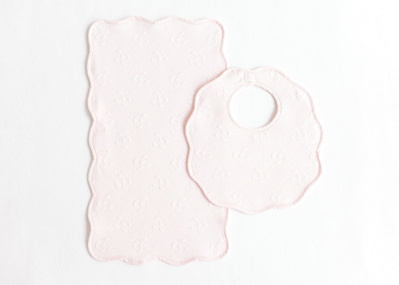Terry Tots Bib & Burp Set in Pink Jacquard Bows